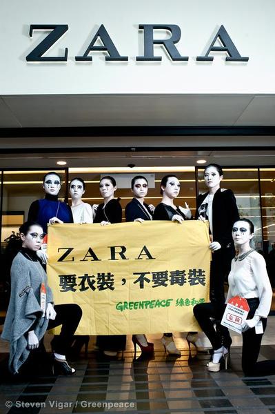Greenpeace-Campaigner führten seit 2011 einen ständigen Dialog mit Zara (die Hauptmarke innerhalb der Inditex-Gruppe) über die Beseitigung von gefährlichen und giftigen Chemikalien aus ihrer Kleidung und der gesamten Lieferkette. Doch erst in dieser Woche beugte sich der Fast-Fashion-Riese dem öffentlichen Druck, sein Giftproblem in Angriff zu nehmen.