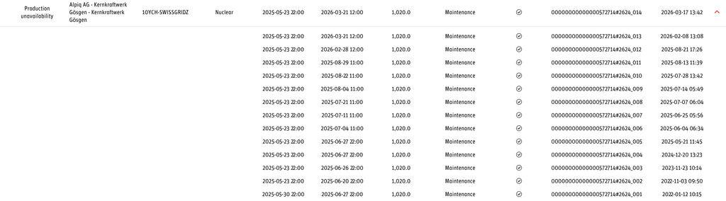 Die Betreiberin des KKG hat aber die Anlage zu diesem Zeitpunkt nicht ausser Betrieb genommen. Die Anlage lief weiter bis zur ordentlichen geplanten Jahresrevision. Konkret wurde der Reaktor am 23. Mai 2025 um 22:00 Uhr vom Netz getrennt und abgeschaltet. Gemäss Daten der Transparenz-Plattform der europäischen Strombörse EEX wurde dieser Zeitpunkt bereits im November 2022 festgelegt und hat somit nichts mit dem entdeckten Auslegungsfehler zu tun.