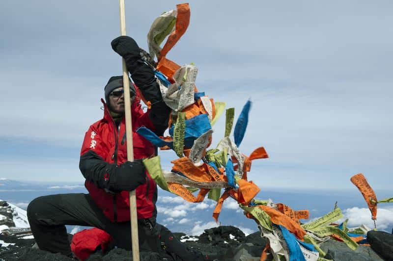 Die Bergsteiger-Gruppe, darunter der Schweizer Aktivist Christian Schmutz, ist frühmorgens losmarschiert und hat den Gipfel gegen Mittag erreichet. Trotz einem sehr starken Wind (160 km/h) konnten sie Seile mit farbigen Fahnen und handgeschriebenen Botschaften aus der ganzen Welt aufhängen.