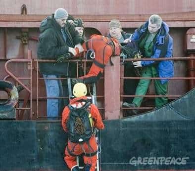 Den Aktivisten gelang es, an der Reling ein Banner mit der Aufschrift «Russland ist keine Müllkippe» anzubringen. Dies obwohl die Besatzung mit allen Mitteln versuchte, sie am Besteigen der «Kapitan Kuroptev» zu hindern.