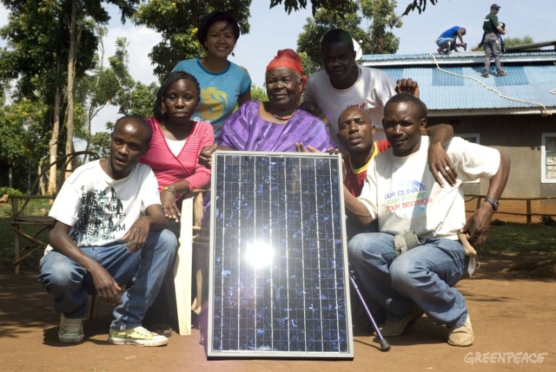 Junge Kenianer der Solar Generation von Greenpeace haben heute Armut und Klimawandel gleichzeitig bekämpft: Sie montierten Solarzellen auf dem «Barack-Obama»-Schulhaus in Kogelo und auf dem Dach von Mama Sarah, der Grossmutter des US-Präsidenten.