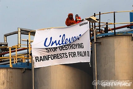 Unilever kauft Palmöl bei Lieferanten ein, die den indonesischen Urwald zerstören und stellt damit unter anderem Produkte der Kosmetikmarke Dove her.