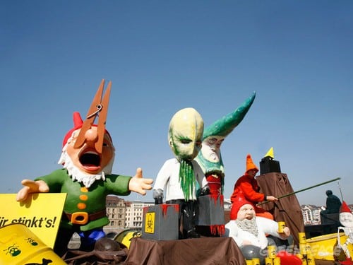 24.05.2007 Basel: Greenpeace präsentiert die «Giftzwerge des Jahres». Diese stehen symbolisch für die Chemiemüll-Deponien der Basler Chemie ©Greenpeace/Grasser
