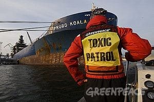 Das Greenpeace-Schiff «Arctic Sunrise» hat heute in Padilski/Estland das Schiff «Probo Koala» blockiert. Dessen Besatzung hatte vor über einem Monat in Abidjan/Elfenbeinküste Giftmüll abgeladen. Dadurch starben sieben Menschen, 44’000 weitere suchten medizinische Versorgung. Es ist unglaublich, dass das Schiff nach diesem Giftmüllskandal ungehindert weiterfahren konnte.
