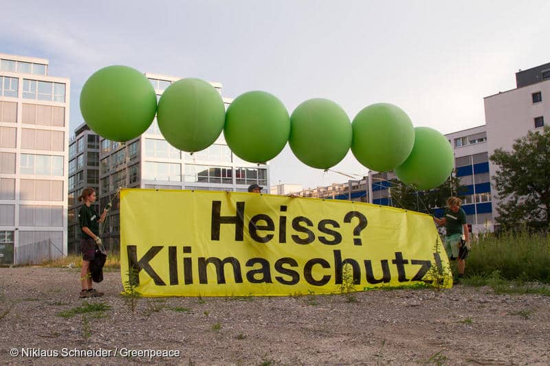 «Heiss? Klimaschutz!» – diese Botschaft liessen die Greenpeace-AktivistInnen in die Luft steigen.