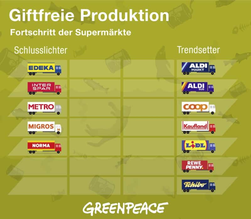Leider gibt es aber nicht nur Trendsetter unter den Supermärkten, es gibt auch die Schlusslichter. Das sind Firmen, die sich einer konsequenten Entgiftung noch immer verweigern. Unter ihnen ist auch die Migros. Die grösste Schweizer Supermarkt-Kette ist nach wie vor keine Detox-Verpflichtung eingegangen. Konkret bemängelt Greenpeace: