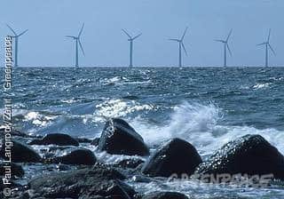 In der neuen Studie «Die [R]Evolution des Stromnetzes in der Nordsee» zeigt Greenpeace auf, wie rund 71 Millionen Haushalte zwischen 2020 und 2030 mit Windenergie versorgt werden können. Offshorewindkraftanlage/Windräder vor…