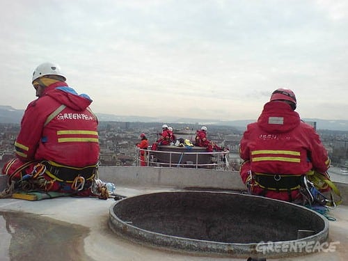 Greenpeace-Aktivisten klettern auf Basler Chemie-Kamine Greenpeace-Aktivisten klettern auf Basler Chemie-Kamine.©Greenpeace Rund 30 Greenpeace-Aktivistinnen und -Aktivisten sind im Morgengrauen in das Ciba-Gelände an der Klybeckstrasse hineinspaziert. Kletterer sind nun dabei, die…