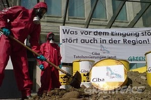 Greenpeace kippt viermal «Giftmüll» ab und reicht Klage ein © Greenpeace Als Reaktion auf die Ereignisse der letzten Wochen haben Greenpeace-AktivistInnen bei Ciba, Syngenta, Clariant und Novartis symbolische «Giftmüll»-Haufen abgekippt.…