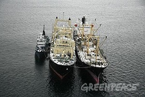 Greenpeace begleitet Walfänger aus ihren Fanggründen