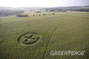 In der Nacht von Mittwoch auf heute Donnerstag hat Greenpeace bei Grézet-Cavagnan in Frankreich ein Gentech-Maisfeld mit einem gigantischen Kreuz markiert. Entdeckt worden war das Feld von Freiwilligen der Umweltschutzorganisation.…