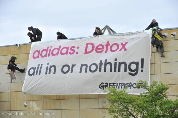 Greenpeace-Aktivisten erinnern WM-Hauptsponsor Adidas an ein altes Versprechen: gefährliche Chemikalien aus seiner Textilproduktion zu verbannen. Greenpeace-Aktivisten erinnern WM-Hauptsponsor Adidas an ein altes Versprechen: gefährliche Chemikalien aus seiner Textilproduktion zu verbannen.…
