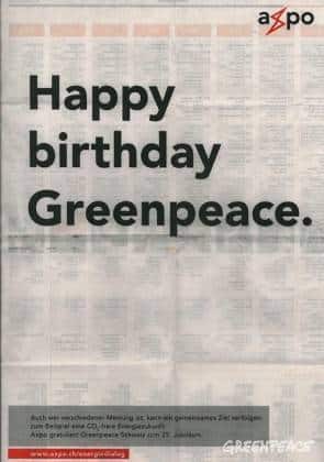 Eine ganze Seite Inserat! In der Sonntagszeitung! Es ist schön, dass Greenpeace von der Axpo so ernst genommen wird. Eine ganze Seite Inserat! In der Sonntagszeitung! Es ist schön, dass…