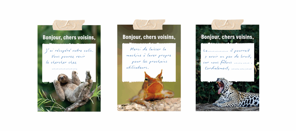 50 charmantes notes autocollantes « Bonjour chers voisins » pour envoyer de petits messages amicaux à vos voisin·es.