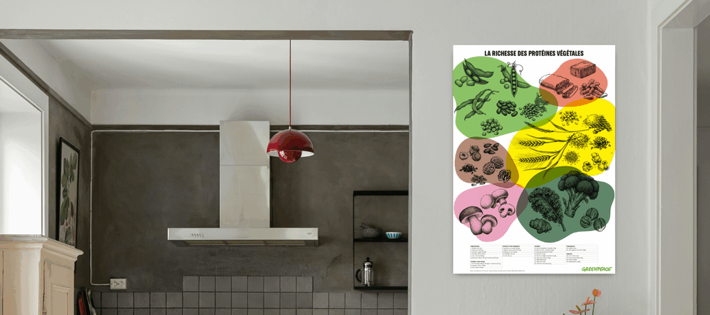 Découvrez au dos du poster des recettes simples et savoureuses pour profiter des protéines végétales sous toutes leurs formes.
