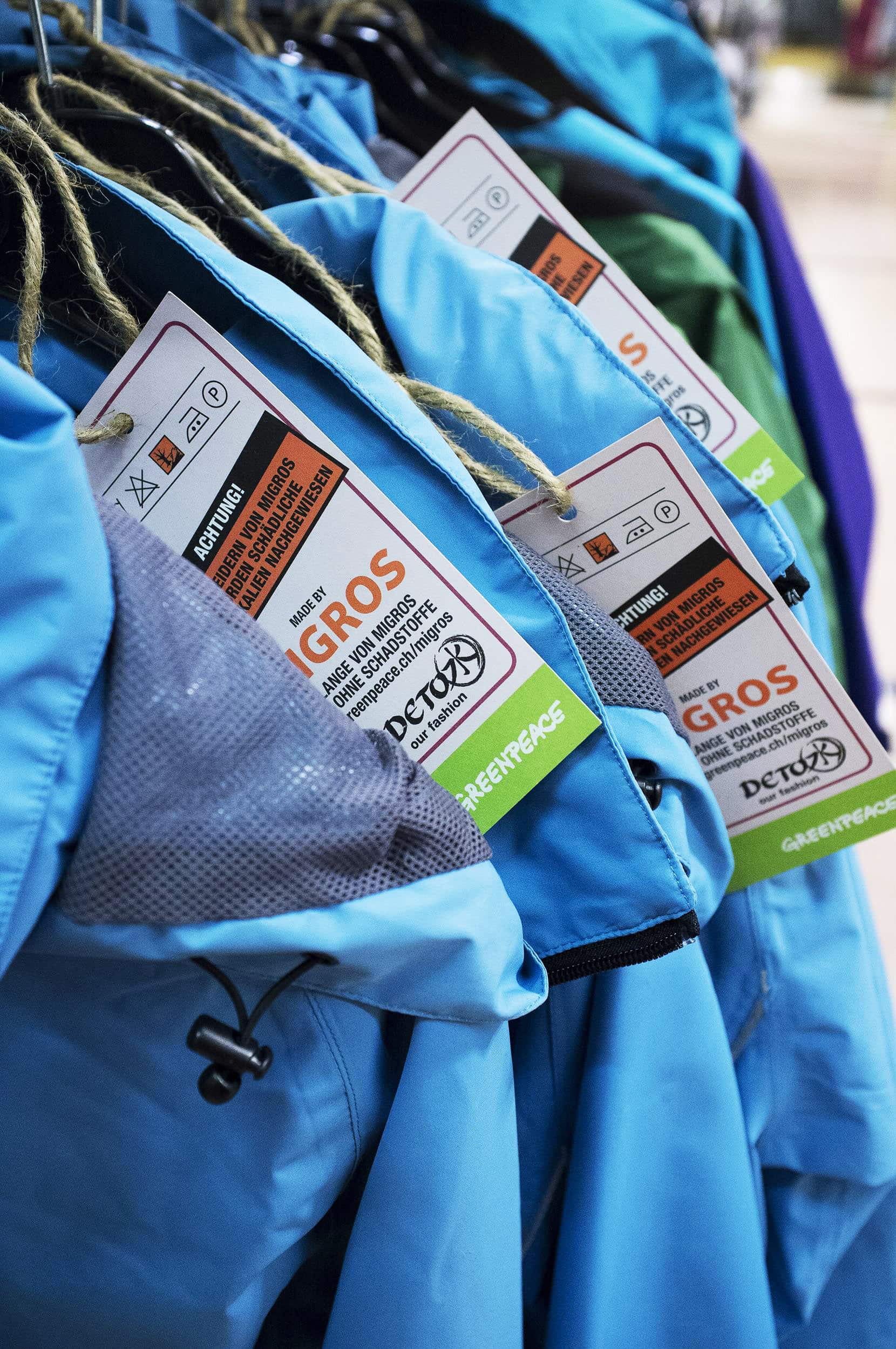 Dans un nouveau rapport « Substances nocives dans les textiles », Greenpeace a testé sept vêtements des marques de la Migros et de la Coop avec des traces de polluants. Mais un imperméable pour enfants de la marque Migros « Trevolution » contenait des concentrations élevées de phtalates (plastifiants) nocifs pour l’environnement et dangereux pour la santé.