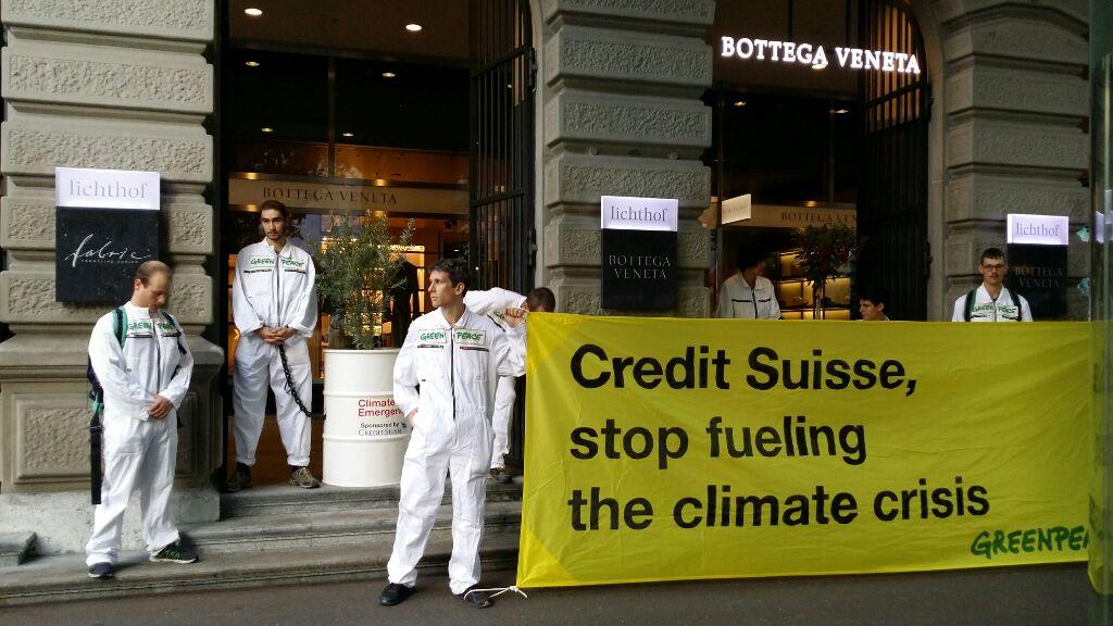 Greenpeace demande au Crédit Suisse d’assumer sa responsabilité face à la crise climatique