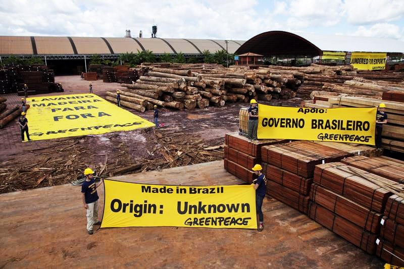 Des militants Greenpeace Brésil ont protesté le 16 mai dernier à la scierie Pampa, à proximité de Belem. Un nouveau rapport de Greenpeace le démontre: le système mis en place…