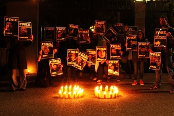 Hier soir, une centaine de militants Greenpeace ont protesté pacifiquement devant les ambassades et consulats russes à Genève, Berne et Zürich, afin de rappeler leur soutien à leurs camarades défenseurs…