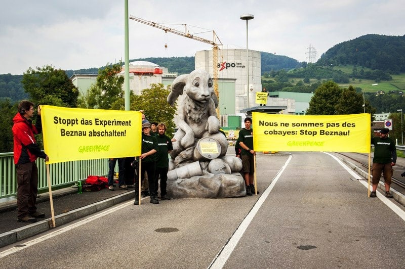 Une douzaine de militants Greenpeace ont inauguré ce matin un monument devant la centrale de Beznau, dont le réacteur numéro 1 est le plus ancien en activité sur la planète.…