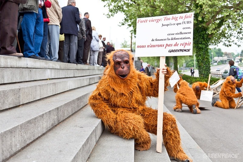 (Bâle/BS) Lors de l’Assemblée générale de l’UBS, des dizaines de militants se sont habillés en orangs-outans et Greenpeace a appelé la banque suisse à mettre fin à tout commerce avec…