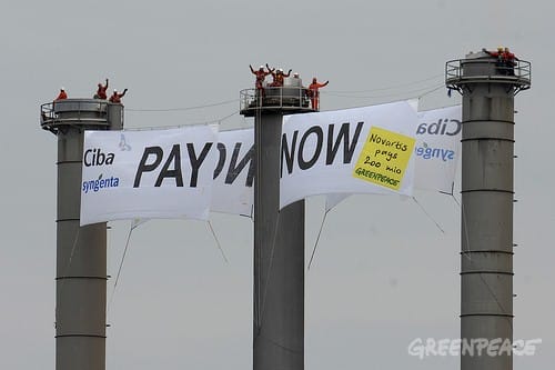 Rapport final de l’action de Greenpeace à Bâle du 26.03.2008 Ciba et Syngenta doivent faire ce que Novartis a déjà fait avant elles. ©Greenpeace/Ex-Press/Würtenberg Les grimpeurs descendent, les banderoles portant…