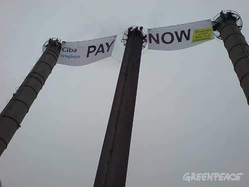 Rapport final de l’action de Greenpeace à Bâle du 26.03.2008 Les grimpeurs descendent, les banderoles portant les messages de Greenpeace restent accrochées en haut des cheminées. La direction de Ciba…