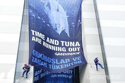 En suspendant une grande banderole «Time and tuna are running out» (Le temps joue contre les thons) sur la façade de l’hôtel où commence aujourd’hui les débats de l’assemblée annuelle…