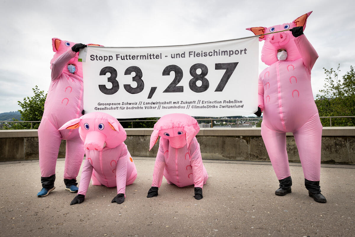 La pétition "Stop à l’importation de viande et de fourrage destructeurs pour l’environnement" déposée auprès des autorités fédérales aujourd'hui à Berne reste donc malheureusement d'une grande actualité. Nous avons recueilli 33'287 signatures pour ce texte soutenu à la fois par Greenpeace Suisse mais aussi par Extinction Rebellion, la Société pour les peuples menacés, Incomindios, Climatestrike…