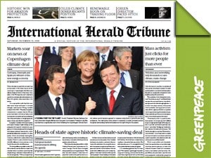Parodie du quotidien américain de langue anglaise, l’International Herald Tribune, à l’occasion de la Conférence sur le climat qui s’est tenue à Copenhague en 2009. » Télécharger la version complète…