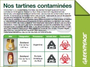 Parmi les 22 variétés de miel achetées dans différents supermarchés suisses et testées en laboratoire par Greenpeace, 6 produits d’origine étrangère comportent des traces de pollens OGM.