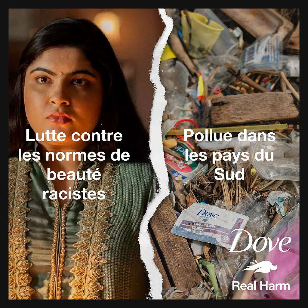 Nous connaissons toutes et tous Dove. C’est bien plus qu’une simple marque de savon. Malgré ses campagnes ‘Real Beauty’ prônant l’émancipation face aux tendances toxiques, Dove contribue en réalité à une crise humanitaire et environnementale en déversant d’énormes volumes de plastique toxique dans le monde. Pourtant, la marque prétend défendre les femmes et les jeunes filles.