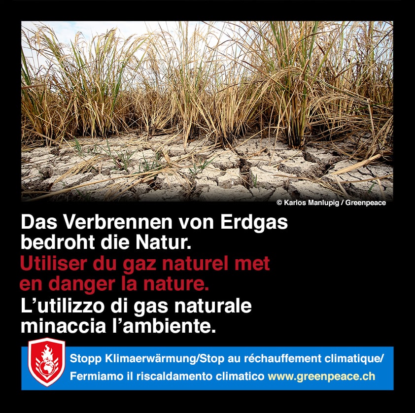 L’Association Suisse de l’Industrie Gazière (ASIG) se livre également à une forme similaire de Greenwashing en suggérant que le gaz naturel est une énergie écologique permettant de protéger la nature. Ceci, alors qu’il est clairement établi que la combustion de gaz naturel entraîne des émissions de CO2 qui ont des conséquences dévastatrices pour la nature et l’homme, au regard des dernières connaissances en matière de climatologie.