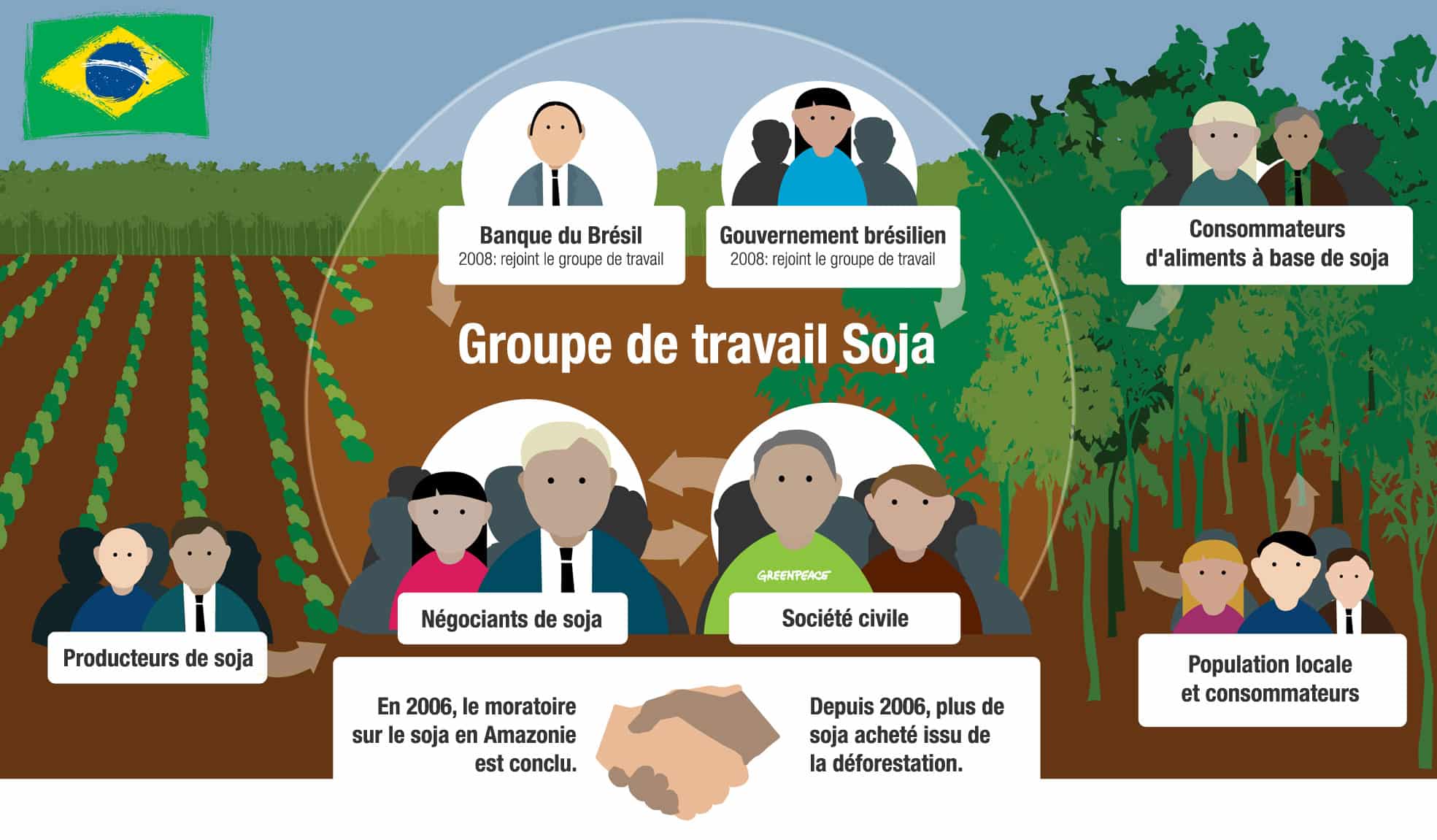 De grandes entreprises de l’industrie alimentaire soutiennent le moratoire depuis 2006 et ont réclamé aux commerçants de soja brésiliens une prolongation du moratoire. Cette dernière intervient à un moment crucial pour la forêt tropicale. En 2013, et pour la première fois depuis des années, la destruction de l’Amazonie a augmenté de 28%! Ce pourcentage a même atteint 52% au Mato Grosso et 37% au Para.