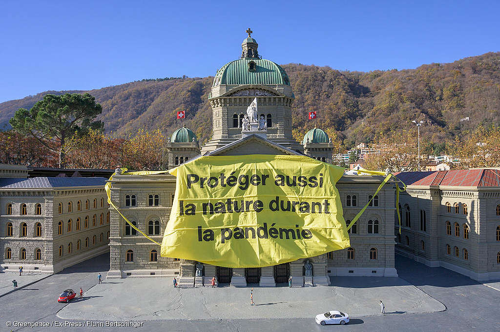 D’autres pays, tels que les Pays-Bas ou le Canada, donnent le bon exemple et s’engagent également à protéger l’environnement durant la pandémie. Le gouvernement canadien investit dans le développement de masques durables afin de réduire les déchets à usage unique liés au coronavirus. Et les Pays-Bas conseillent en ligne : « Achetez un masque en tissu que vous pourrez laver et réutiliser. C’est mieux pour l’environnement ». Le Conseil fédéral en est loin : ce n’est que suite à une demande de Greenpeace Suisse que depuis le mois d’août il ne recommande plus les masques à usage unique au grand public mais aux personnes souffrant de maladies respiratoires. Greenpeace Suisse exige que le gouvernement recommande au grand public des masques en tissu certifiés, répondant à des critères de sécurité et d’écologie.