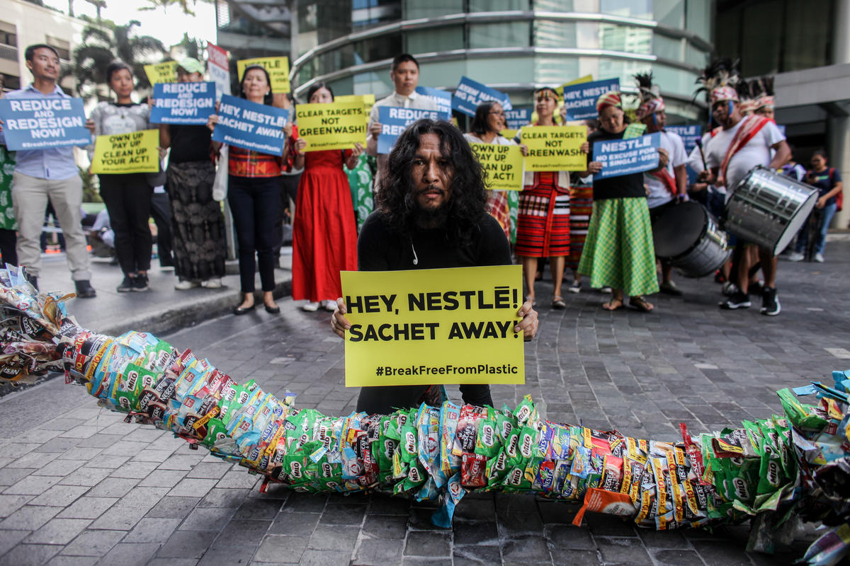 Des militant·e·s Greenpeace s’engagent dans le monde entier contre la pollution plastique causée par Nestlé. Découvrez leur action dans cette galerie de photos
