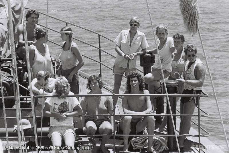 Vous trouverez ici des images de l’équipage à bord du Rainbow Warrior en 1985,dont le photographe Fernando Pereira.