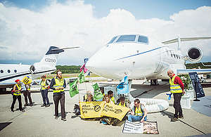 Une centaine de militant·es pour le climat, venus de 17 pays et soutenant Greenpeace, Stay Grounded, Extinction Rebellion, Scientist Rebellion et d’autres organisations de défense du climat, arrêtés.