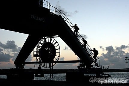 La Rochelle, France — Mercredi 4 juillet dès 22 heures, treize activistes de Greenpeace se sont attachés au pied et au sommet des trois grues de déchargement du port de…