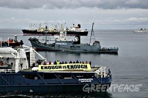 Le navire Greenpeace MY Esperanza a escorté aujourd’hui la flotte de chasse baleinière japonaise en-dehors des eaux de l’Antarctique et au-delà de la zone de chasse. Des militants Greenpeace à…