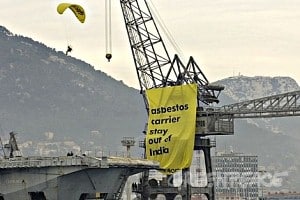 Après 25 heures d’occupation du porte-avions Clemenceau, Greenpeace déplace la lutte contre l’exportation du navire chargé d’amiante sur le terrain juridique. Greenpeace a débarqué par voie aéroportée sur le porte…