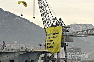 Greenpeace a débarqué par voie aéroportée sur le porte avion Clemenceau dans la rade de Toulon, ce matin vers 11h. Trois activistes sur le bateau et quatre sur une grue…