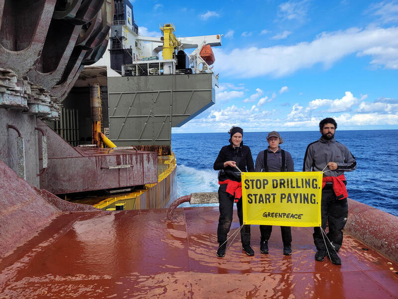Des militants·es Greenpeace International tentent en ce moment-même de perturber l’acheminement d’une plateforme de Shell, en route pour la mer du Nord, pour agrandir un champ pétro gazier déjà existant. Venant de pays particulièrement touchés par la crise climatique, ils sont passés à l’action.