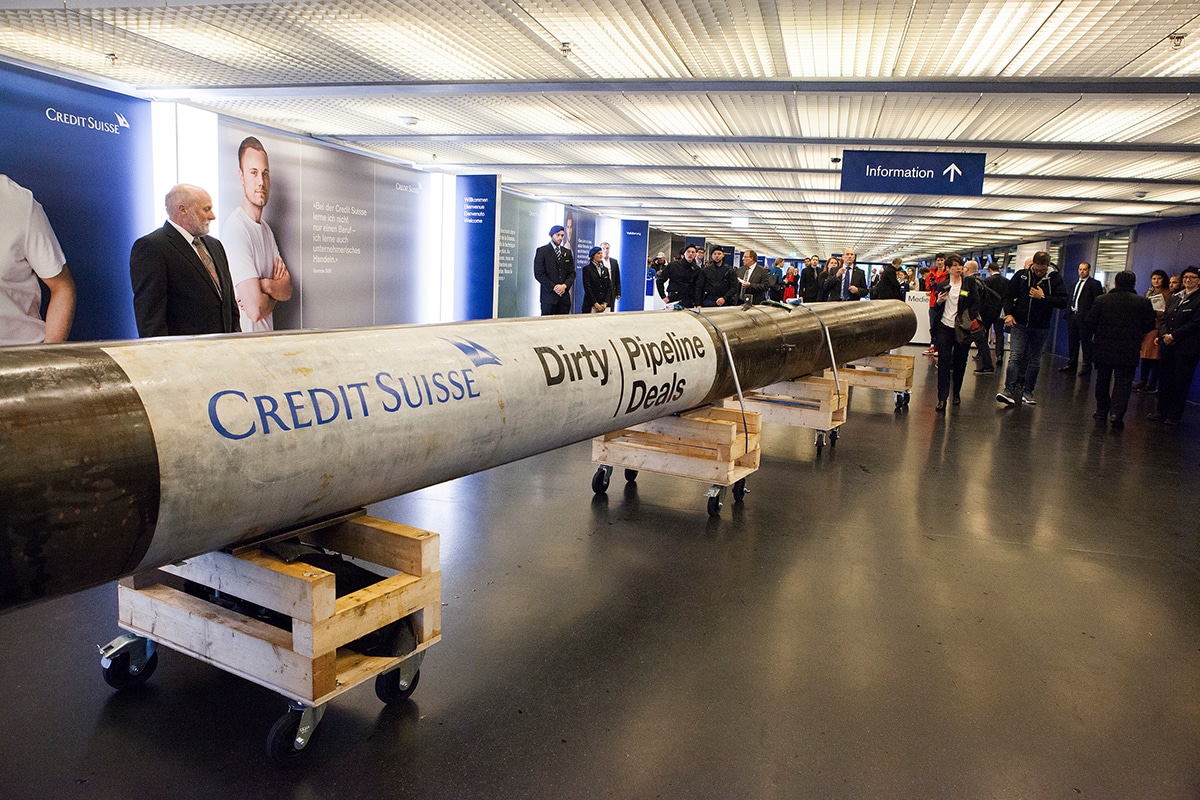 des militants GreenpeaceDes militants Greenpeace ont amené un modèle d’oléoduc et déployé une bannière géante lors de l’assemblée générale du Credit Suisse à Zurich. L’objectif était d’exiger encore une fois de la…
