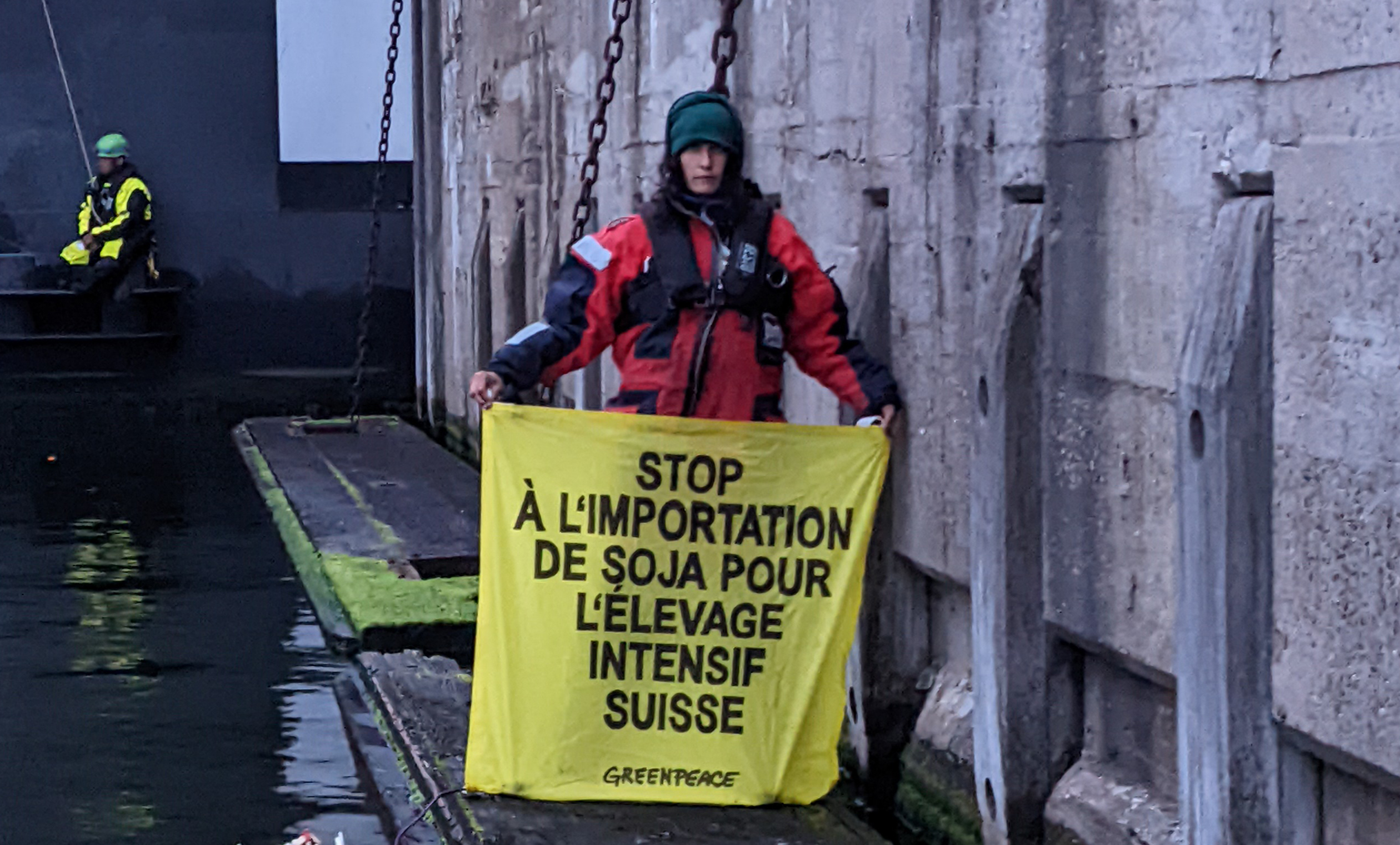 Des militant·e·s Greenpeace s’opposent aux importations de soja pour l’élevage intensif