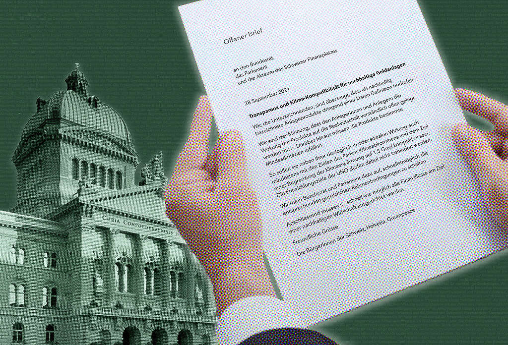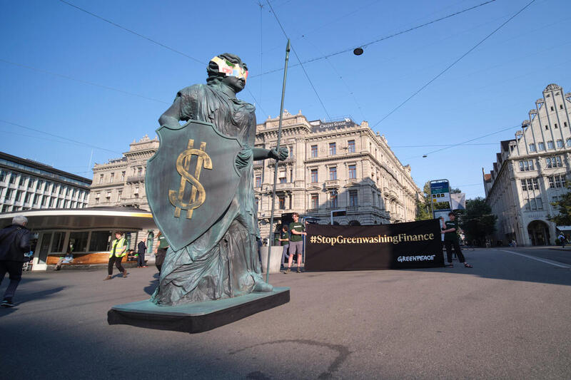 Helvetia proteste avec les militants Greenpeace contre le greenwashing de la place financière suisse
