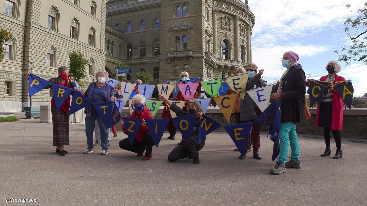 Greenpeace Suisse a déposé aujourd'hui à la Chancellerie fédérale l'action collective "Protéger le climat - réguler la place financière", qui a recueilli plus de 23 000 signatures.