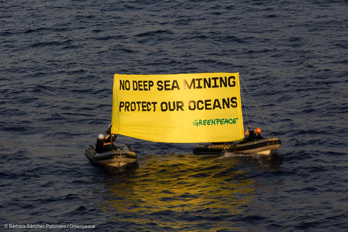 Extraction minière en eaux profondes: des militants·es Greenpeace occupent un navire appartenant à une entreprise suisse